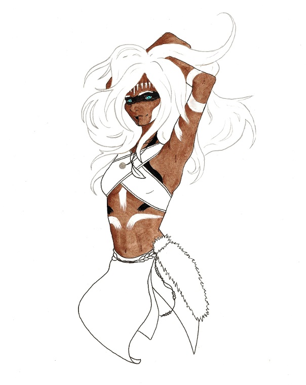 This week, I drew Eyila, of the Ikaheka wind tribe. She almost didn't happen, I've been so excited about my book - I'm writing some big revelations right now, and my heart's been in my throat for days over it! The second book of the trilogy is nearly finished, too - it's so close I can taste it!! Of course, then comes some final redrafting, simmering and pondering before I send it out to agents, but the longest job is almost done, and I remain confident that it's my best work yet.